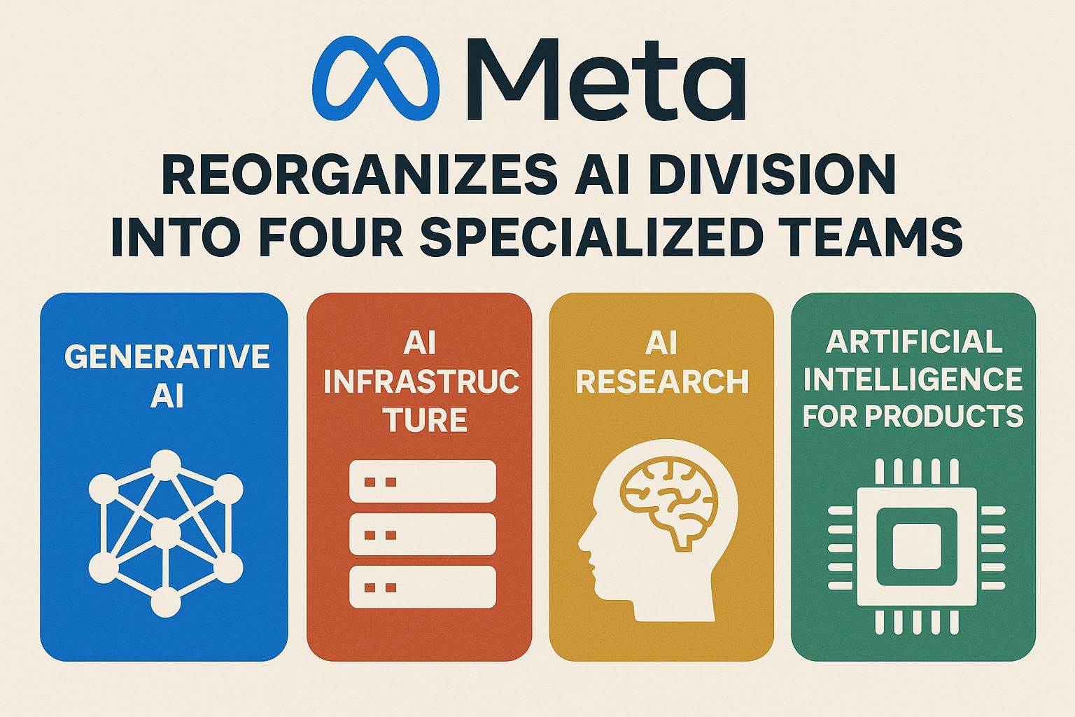 Meta has restructured its AI operations under 'Meta Superintelligence Labs' with Scale AI co-founder Alexandr Wang taking central leadership. The four teams include a forward-looking TBD Lab, an AI products division, infrastructure support, and long-term research, with both Friedman and LeCun reporting to Wang.